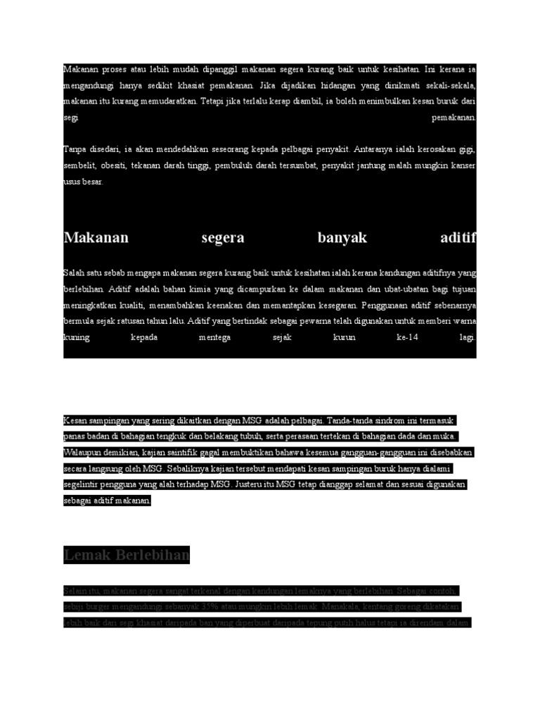 Karangan Kesan Makanan Segera Rass Naa