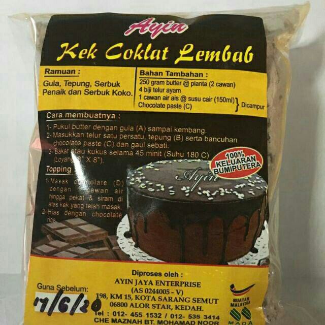 Boleh disediakan bila-bila masa dengan hanya perlu tambah bahan basah seperti telur minyak dan air. Lepas tu 3 pek jugak sekali buat malas nak simpan sebenarnya itu yang sekaligus terus buat. Menjual pelbagai tepung kek segera yang mudah digunakan seperti ABC.