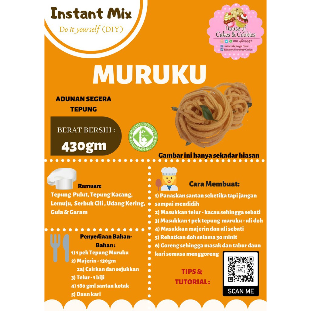 Masukkan dlm acuan maruku dan goreng dgn api sederhana. Tepung Muruku Mix Menghasilkan 2-3 balang panjang. 1 Paket Tepung Pulut 100 gm cream cheesecheedar 100 gm gula aising 3 biji telor 2 sudu besar Secukup Rasa brand Tumix 180 gm air.