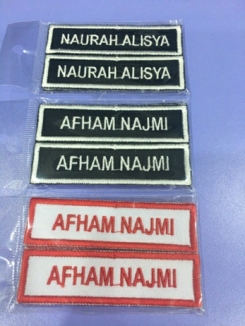 NAME TAG SULAM SEKOLAH RENDAH. Pesan kami Cepat buat tempahan supaya bila baju baru dah beli Boleh terus jahit atau iron on. Tidak berkesempatan untuk berbalas wasap.